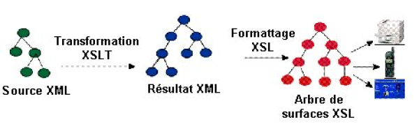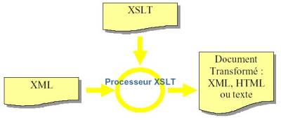 Un processeur XSLT applique à un document XML les transformations décrites dans un document XSLT et génère un nouveau document (XML, HTML, texte)